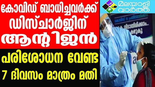 നേരിയ രോഗലക്ഷണമുള്ളവര്ക്ക് ഡിസ്ചാര്ജ് ചെയ്യുന്നതിന് റാപ്പിഡ് ആന്റിജന് ടെസ്റ്റ് നെഗറ്റീവ് ആകണമെന്നില്ല. രോഗ ലക്ഷണങ്ങളുള്ള രോഗികള് ലക്ഷണങ്ങള് കണ്ടു തുടങ്ങിയത് മുതലോ, ലക്ഷണങ്ങള് ഇല്ലാത്ത രോഗികള് കോവിഡ് സ്ഥിരീകരിച്ചത് മുതലോ വീട്ടില് 7 ദിവസം നിരീക്ഷണത്തില് കഴിയുക. അതോടൊപ്പം മൂന്ന് ദിവസം തുടര്ച്ചയായി പനി ഇല്ലാതിരിക്കുകയും ചെയ്താല് ഗൃഹ നിരീക്ഷണം അവസാനിപ്പിക്കാം.