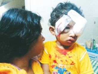 ആക്രമണത്തില് കുട്ടിയുടെ ശരീരത്തിന്റെ വിവിധ ഭാഗങ്ങളില് കടിയേറ്റു. പരിഭ്രാന്തരായ വീട്ടുകാര് ബഹളം കൂട്ടി ഒരുവിധത്തില് നായയെ തുരത്തി. രക്തത്തില് കുളിച്ച കുട്ടിയെ കോരിയെടുത്തു സമീപവാസികള് കോതമംഗലത്തെ സ്വകാര്യ ആശുപത്രിയിലും പിന്നീടു ലിറ്റില് ഫല്വര് ആശുപത്രിയിലും എത്തിക്കുകയായിരുന്നു.ദേവാനന്ദിനെ ഇന്നു ശസ്ത്രക്രിയയ്ക്കു വിധേയനാക്കും. രണ്ടു കണ്ണുകളുടേയും കണ്പോളകള്ക്ക് സാരാമായ പരിക്കേറ്റിറ്റുണ്ട്. ഇടതു കണ്ണിന്റെ ഞരമ്പിനും ക്ഷതമുണ്ട്. ശസ്ത്രക്രിയ നടത്തിയ ശേഷം പ്ലാസ്റ്റിക് സര്ജറി ചെയ്യണമെന്നാണ് ഡോക്ടര്മാര് നിര്ദേശിച്ചിരിക്കുന്നത്.