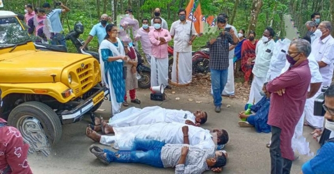 കോട്ടയം ഞീഴൂരിൽ കെ.റെയിലിന് കല്ലിടാനെത്തിയ വാഹനം പ്രതിഷേധക്കാർ തടഞ്ഞു; നടുറോഡിൽ കിടന്ന പ്രതിഷേധവുമായി നാട്ടുകാർ; ഞീഴൂർ വെളിയംകോട് സംഘർഷാവസ്ഥ