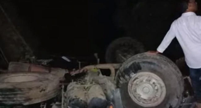 നാട്ടുകാരുടെയും അഗ്നിശമന സേനയുടെയും നേതൃത്വത്തില് വടം ഉപയോഗിച്ച് ലോറി നേരെയാക്കാന് ശ്രമിച്ചുവെങ്കിലും പരാജയപ്പെട്ടു. മേഖലയില് രക്ഷാപ്രവര്ത്തനം തുടരുകയാണ്.