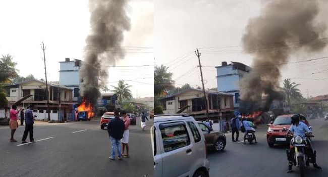 കോട്ടയം മണർകാട് പെരുമാനൂർകുളത്ത് റോഡരികിൽ നിർത്തിയിട്ടിരുന്ന കാറിന് തീ പിടിച്ചു; തീകത്തിയത് പെട്രോൾ തീർന്ന് നിർത്തിയിട്ട കാറിൽ; നിമിഷങ്ങൾക്കകം സംഭവിച്ചത് !!!