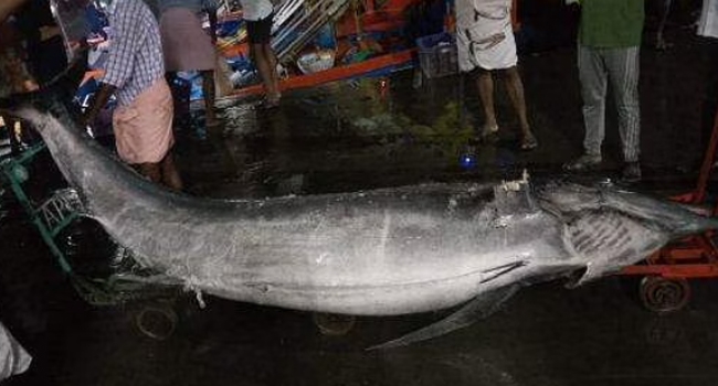 മുനമ്പം ഹാര്ബറില് ലേലത്തിനെത്തിയവര് ഒരു മീനിനെ കണ്ട് ശെരിക്കും ഞെട്ടി... ഒരു മീനിന്റെ ഭാരം 500 കിലോയും 12 അടിക്ക് മേല് നീളവും