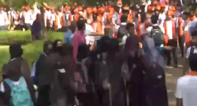 ഹിജാബ് വിവാദം തെരുവ് യുദ്ധത്തിലേക്ക്; പ്രതിഷേധക്കാര് ചേരിതിരിഞ്ഞ് ഏറ്റുമുട്ടി; കര്ണാടകയില് സ്കൂളുകളും കോളേജുകളും മൂന്ന് ദിവസത്തേക്ക് അടച്ചു