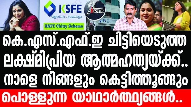ഇത് ലക്ഷ്മിപ്രിയയുടെ ഫേസ്ബുക് പോസ്റ്റിനുള്ള മറുപടിയല്ല ...മറിച്ച് ഒരു ഓർമപ്പെടുത്തലാണ് ... കെ എസ് എഫ് ഇ യിൽ നിന്ന് വൻ ചിട്ടികൾ പിടിക്കുന്നവർ പിന്നീട് കടക്കെണിയിലാകുന്നത് കെ എസ് എഫ് ഇ യുടെ കുറ്റമാണോ ? കാര്യങ്ങൾ കൃത്യമായി മനസ്സിലാക്കാതെ , തിരിച്ചടവിനുള്ള മാർഗ്ഗമില്ലാതെ വൻ ചിട്ടികളിൽ ചേർന്നാൽ ഉണ്ടാകുന്ന അപകടങ്ങൾ ...