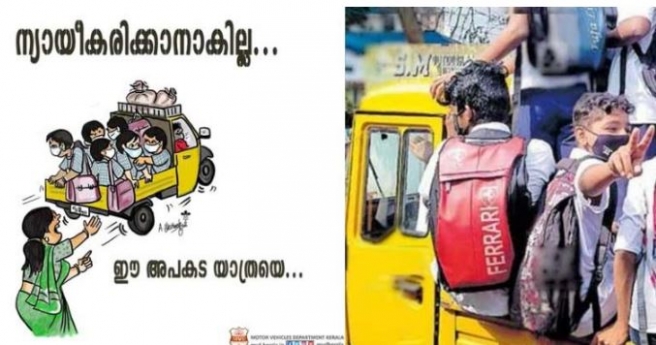 സ്കൂൾ കുട്ടികളെ ഗുഡ്സ് ഓട്ടോയിൽ കുത്തി നിറച്ച് അപകടകരമായികയറ്റി കൊണ്ടുപോയ ഡ്രൈവർക്കെതിരെ മോട്ടോർ വാഹന വകുപ്പ് നിയമ നടപടികൾ സ്വീകരിച്ചിരുന്നു. കുട്ടികളെ സഹായിക്കാൻ വേണ്ടി ഡ്രൈവർ ചെയ്ത ഒരു പുണ്യ പ്രവർത്തിക്ക് വകുപ്പ് ഇങ്ങനെ ശിക്ഷ നൽകാമോ എന്നാണ് ചിലരുടെ ചോദ്യം.