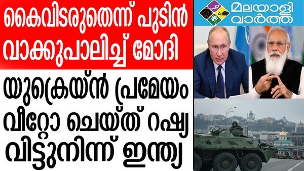 റഷ്യന് പ്രസിഡന്റ് വ്ലാഡമിന് പുടിന് പ്രധാന മന്ത്രി നരേന്ദ്ര മോദിയെ വിളിച്ചപ്പോള് ഒന്നേ ആവശ്യപ്പെട്ടുള്ളൂ. റഷ്യയ്ക്ക് പിടിച്ചുനില്ക്കാന് പിന്തുണ ആവശ്യമാണ്. പുടിന് നല്കിയ വാക്ക് മോദി പാലിച്ചു. യുഎന് സുരക്ഷാ കൗണ്സിലില് അവതരിപ്പിച്ച യുക്രെയ്ന് പ്രമേയത്തില് നിന്നും ഇന്ത്യ വിട്ടു നിന്നു.