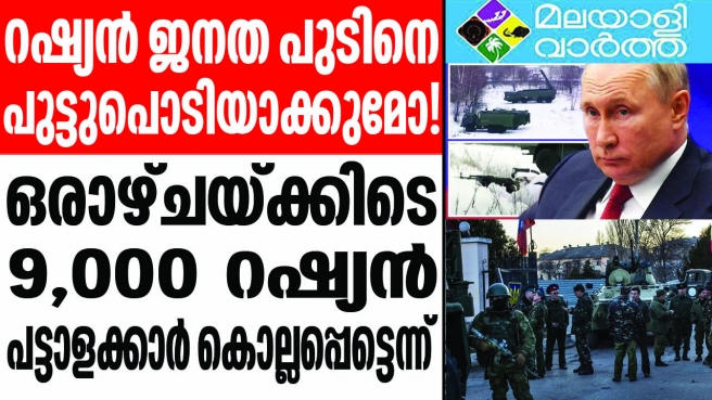 ശവപ്പെട്ടി അയച്ചാല് തീര്ന്നു... റഷ്യ യുക്രെയിന് യുദ്ധം ശക്തമാകവേ റഷ്യയ്ക്ക് വലിയ സൈനിക നഷ്ടം ഉണ്ടായെന്ന് സൂചന; ഒരാഴ്ചയ്ക്കിടെ 9,000 റഷ്യന് പട്ടാളക്കാര് കൊല്ലപ്പെട്ടെന്ന് യുക്രെയിന്; ഇത്രയും ശവപ്പെട്ടികള് റഷ്യയിലെത്തിയാല് പുടിന്റെ കാര്യം തീര്ന്നു; രണ്ടാം ഘട്ട സമാധാന ചര്ച്ച ഇന്ന്
