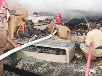 പതിനഞ്ചോളം അഗ്നിശമനസേന യൂണിറ്റുകള് മണിക്കൂറുകള് പ്രയത്നിച്ചാണ് വന് അഗ്നിബാധ ഭാഗികമായെങ്കിലും നിയന്ത്രണവിധേയമാക്കിയത്. പുലര്ച്ചെയോടെയാണ് തീ പൂര്ണമായും അണച്ചത്. ഷോര്ട്ട് സര്ക്യൂട്ടാണ് അപകടകാരണമെന്നാണ് പ്രാഥമിക നിഗമനം. സമീപത്ത് വസ്ത്രവ്യാപാരസ്ഥാപനങ്ങളും ലോഡ്ജും ഉണ്ടായിരുന്നതിനാല് തീ പടരുന്നത് വന് അപകടത്തിന് കാരണമാകുമെന്നതിനാല് മുന്കരുതലുകളോടെയാണ് തീയണച്ചത്.