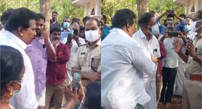 ‘തെമ്മാടിത്തരം കാണിക്കരുത്. താൻ ആരാണ് ഒരു സബ് ഇൻസ്പെക്ടർ. തന്നെക്കാളും വലിയ ആളാടോ ഞാൻ. തന്റെ മുകളിലുള്ള ഉദ്യോഗസ്ഥരെക്കാളും വലിയ ആളാണ് ഞാൻ. ഞാൻ ഇവിടുത്തെ ജനപ്രതിനിധിയാണ്. അവർ രോഷത്തിലാണ്. നിങ്ങൾ മടങ്ങി പോകണം.’ നാട്ടുകാർക്കൊപ്പം നിന്ന് എംപി പൊലീസുകാരനോട് ആവശ്യപ്പെട്ടു. എന്നാൽ തന്നെ ഏൽപ്പിച്ച ജോലി പൂർത്തിയാക്കാതെ മടങ്ങില്ലെന്ന് ഉദ്യോഗസ്ഥനും പറഞ്ഞതോടെ എംപി രോഷാകുലനായി.