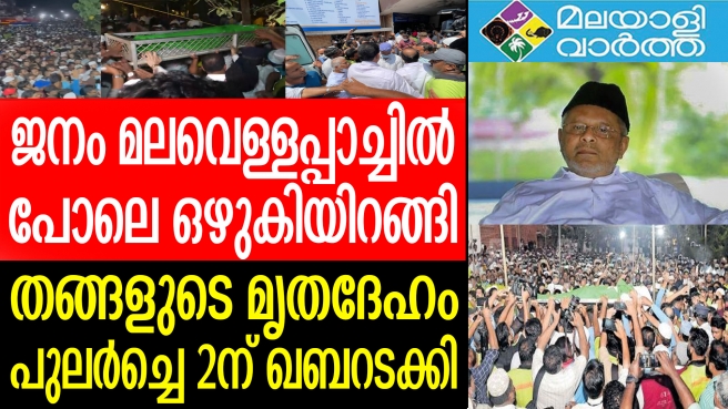 ഒരു സാമുദായിക നേതാവിന് ഇത്രയും വലിയ വിട നല്കുന്നത് ഇതാദ്യമായാണ്. മലവെള്ള പാച്ചില് പോലെ തങ്ങളുടെ പ്രിയ നേതാവിനെ അവസാനമായി ഒരുനോക്ക് കാണാന് ജനം ഒഴുകിയെത്തിയിരുന്നു. ജനത്തിരക്ക് നിയന്ത്രണാതീതമായതോടെ ഇന്ന് രാവിലെ 9ന് വച്ചിരുന്ന ഖബറടക്കം നേരത്തെയാക്കി.