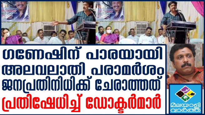 സംഘടനാചുമതലയുളള ഡോക്ടര്മാരുടെ പേരുകള് പറഞ്ഞ് ചില അലവലാതി ഡോക്ടര്മാര് എനിക്കെതിരെ പറയുന്നത് കേട്ടു എന്നായിരുന്നു ഗണേഷ് കുമാറിന്റെ പരാമര്ശം. സ്റ്റാഫിന്റെ പാറ്റേണ് ശരിയല്ലെന്നാണ് ഒരു നേതാവ് ടിവിയില് പറഞ്ഞത്. തലവൂര് ആയുര്വേദ ആശുപത്രിക്കു വേണ്ടിയല്ല അയാള് സംസാരിക്കുന്നത്. അയാള്ക്ക് സ്റ്റാഫ് പാറ്റേണ് ശരിയാക്കിയാല് മതി. 40 കിടക്കയുള്ള ആശുപത്രിയില് രണ്ടു പേരെ ഉള്ളൂവെന്നാണ് പറഞ്ഞത്. രണ്ടു പേര് ഉണ്ടായിരുന്നു, ഒരാള് പോയതാണ്. പേ വാര്ഡിനായി ഒരു സ്വീപ്പറെതന്നെ ഇവിടെ കൊടുത്തിട്ടുണ്ട്.