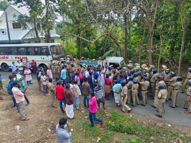 ഏതെങ്കിലും സാഹചര്യത്തിൽ സംഘർഷമുണ്ടായാൽ ഗ്രനേഡ് പ്രയോഗിക്കേണ്ടിവരുമെന്ന സൂചനയാണ് പൊലീസ് സംഘം നൽകുന്നത്. പാലാ ഡിവൈ.എസ്.പി ഷാജു ജോസിന്റെ നേതൃത്വത്തിലാണ് പൊലീസ് സംഘം സ്ഥലത്ത് എത്തിയിരിക്കുന്നത്.