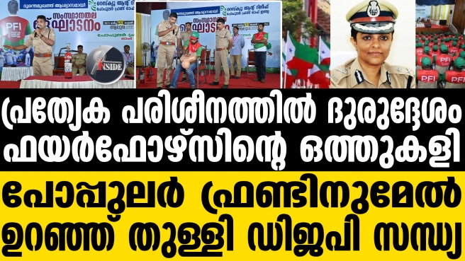 പോപ്പുലര് ഫ്രണ്ടിന് എന്ത് പരിശീനം? ഫയർഫോഴ്സിൽ അടിമുടി ദുരഹത! പ്രത്യേക പരിശീനത്തിൽ ദുരുദ്ദേശം... ഫയർഫോഴ്സിന്റെ ഒത്തുകളി... ഉറഞ്ഞ് തുള്ളി ഡിജപി സന്ധ്യ