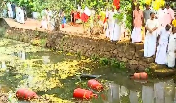 പാചകവാതക- ഇന്ധന വില ദിനംപ്രതി വർധിക്കുകയാണ്. ഇതിനെതിരെ ഇരുചക്രവാഹനവും ഗ്യാസ് സിലിണ്ടറുകളും ആറ്റിൽ ഒഴുക്കി പ്രതിഷേധം ശക്തമാകുന്നു. കേരള കോൺഗ്രസിന്റെ നേതൃത്വത്തിലാണ് കോട്ടയം ചെങ്ങളത്ത് വ്യത്യസ്തമായ ഇത്തരത്തിൽ പ്രതിഷേധം നടന്നത്. മോൻസ് ജോസഫ് എം.എൽ.എ പരിപാടി ഉദ്ഘാടനം ചെയ്യുകയുണ്ടായി.