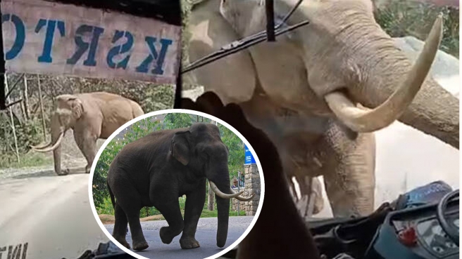 ആനവണ്ടിയുടെ ഓട്ടം തടയാന് കൊമ്പുകുലുക്കിയെത്തി മൂന്നാറിന്റെ പടയപ്പ. ഡ്രൈവര് വെട്ടിച്ച് ഒഴിഞ്ഞത് അപകടം ഒഴിവാക്കി. പടയപ്പ ഒരു കാട്ടാനയാണെങ്കിലും കേരളത്തിലാകെ അറിയപ്പെടുന്ന ഒരു സെലിബ്രേറ്റി കൂടിയാണ്. മൂന്നാറില് പട്ടണത്തില് സ്ഥിരസാന്നിദ്ധ്യമായ ഈ കൊമ്പന് ഇടയ്ക്കിടെ ഇങ്ങനെ വാര്ത്തയിലെ താരമാകാറുണ്ട്.