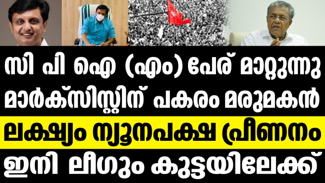 കമ്യൂണിസ്റ്റ് പാര്ട്ടി ഓഫ് ഇന്ത്യ (മാര്ക്സിസ്റ്റ് ) എന്ന പേര് സി പി എം ഉപേക്ഷിക്കുന്നു. പകരം കമ്യൂണിസ്റ്റ് പാര്ട്ടി ഓഫ് ഇന്ത്യ (മരുമകന്) എന്ന് മാറും. ഇടതു മുന്നണി കണ്വീനര് സ്ഥാനത്ത് നിന്ന് വിജയരാഘവനെ നീക്കിയതിന് പിന്നിലെ രഹസ്യത്തിന്റെ താക്കോലും മരുമകന്റെ കൈയില് ഭദ്രമാണ്. ചുരുക്കത്തില് മുസ്ലീങ്ങളെ തോല്പ്പിക്കാന് കോണ്ഗ്രസിനെതിരെ വോട്ടു ചെയ്ത ഹിന്ദുക്കള് പെട്ടെന്ന് പറഞ്ഞാല് മതി. മരുമകന്റെ നേതൃത്വത്തില് സി പി എം ന്യൂനപക്ഷ പ്രീണനത്തിന്റെ പുതിയ മേഖലകളിലേക്ക് പ്രവേശിക്കുകയാണ്.
