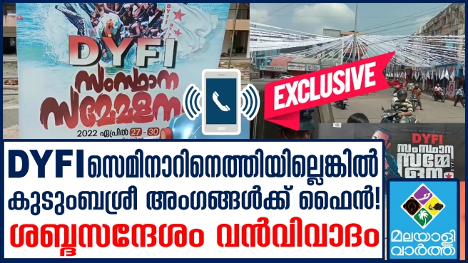 DYFI സെമിനാറിനെത്തിയില്ലെങ്കിൽ കുടുംബശ്രീ അംഗങ്ങൾക്ക് ഫൈൻ! ശബ്ദസന്ദേശം വൻവിവാദം... ഓഡിയോ സന്ദേശം പുറത്ത്...