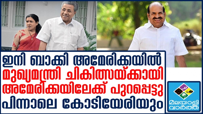 27 ന് ചേരുന്ന മന്ത്രിസഭായോഗത്തില് മുഖ്യമന്ത്രി ഓണ്ലൈനായി പങ്കെടുക്കും. ജനുവരിയില് ചികിത്സക്ക് പോയപ്പോള് തുടര്പരിശോധന വേണമെന്ന് ആശുപത്രി അധികൃതര് അറിയിച്ചിരുന്നെങ്കിലും പാര്ട്ടി സമ്മേളനം നടക്കുന്നത് കൊണ്ടാണ് ചികിത്സകള് നീട്ടിവെച്ചത്. ഇത് മൂന്നാം തവണയാണ് മുഖ്യമന്ത്രി ചികിത്സക്ക് വേണ്ടി അമേരിക്കയിലേക്ക് പോകുന്നത്. മിനസോട്ടയിലെ ചികിത്സക്ക് ആദ്യമായി പോകുന്നത് 2018ലാണ്. മുമ്പ് ചികിത്സക്ക് പോയപ്പോഴൊന്നും മുഖ്യമന്ത്രിയുടെ ചുമതല ആര്ക്കും കൈമാറിയിരുന്നില്ല.