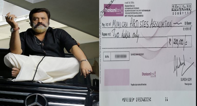 ഇപ്പോഴിതാ പുതിയ സിനിമകളുടെ അഡ്വാൻസ് കിട്ടുമ്പോൾ അതിൽനിന്നു രണ്ട് ലക്ഷം രൂപ മിമിക്രി കലാകാരന്മാരുടെ സംഘടനയ്ക്കു നൽകുമെന്ന വാക്ക് വീണ്ടും പാലിച്ച് സുരേഷ്ഗോപി രംഗത്ത് എത്തിയിരിക്കുകയാണ്. ഒറ്റക്കൊമ്പൻ എന്ന സിനിമയിൽ നിന്നുള്ള അഡ്വാൻസ് ലഭിച്ചപ്പോഴാണ് അദ്ദേഹം രണ്ടു ലക്ഷത്തിന്റെ ചെക്ക് മാ സംഘടനയ്ക്ക് നൽകിയത്. ഇക്കഴിഞ്ഞ ഓണക്കാലത്ത് ഒരു ടെലിവിഷൻ ചാനലിൽ നടന്ന പരിപാടിയിലാണ് സുരേഷ് ഗോപി മിമിക്രി കലാകാരന്മാർക്ക് സഹായം പ്രഖ്യാപിച്ചുകൊണ്ട് രംഗത്ത് എത്തിയത്.