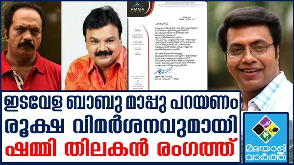 പണ്ട് തിലകനെതിരെ... തിലകനെതിരെ അമ്മയില് നടന്ന ചര്ച്ചകളെ ഓര്മ്മിപ്പിച്ച് മകന് ഷമ്മി തിലകന് രൂക്ഷ വിമര്ശനവുമായി രംഗത്ത്; വിജയ് ബാബുവിനെതിരെ പുറത്തിറക്കിയ പത്രക്കുറിപ്പില് തന്റെ പേരും ഉള്പ്പെടുത്തിയത് വസ്തുതാ വിരുദ്ധം; ഇടവേള ബാബു മാപ്പു പറയണം