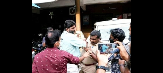 അദേഹത്തിന്റെ നെഞ്ചിൽ മുട്ട് കൈ വച്ചു ഇടിച്ചതു മാധ്യമ പ്രവർത്തകൻ രാധാകൃഷ്ണൻ ക്ണായർ. പരസ്യമായി കയ്യേറ്റം ചെയ്തിട്ട് പെറ്റി കേസ് പോലും എടുക്കാൻ വിട്ടില്ല. കേസ് ഒത്തുതീർപ്പ് ആക്കിയെന്നു കേൾക്കുന്നു. സി ഐ ക്കു അപമാനം മിച്ചം.