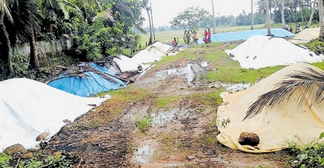 തലവടി ആനപ്രമ്പാൽ ജംക്ഷനു സമീപം കൂട്ടിയിട്ടിരിക്കുന്നത് കൊയ്ത്തു കഴിഞ്ഞ ശേഷം 11 ദിവസം പിന്നിട്ട നെല്ലാണ്. പാടത്ത് ജലനിരപ്പു വർധിക്കുന്നതിനാൽ എപ്പോൾ വേണമെങ്കിലും നെല്ല് സൂക്ഷിച്ചിരിക്കുന്ന പുരയിടത്തിൽ വെള്ളം കയറുവാനുള്ള സാധ്യത കൂടുതൽ . അങ്ങനെ വന്നാൽ 16 ലക്ഷത്തോളം രൂപയുടെ നെല്ലാകും നശിക്കുന്നത്. നിലവിൽ തർക്കം തലവടി വെള്ളക്കിണർ, കൊച്ചമ്മനം പ്രദേശത്തെ തൊഴിലാളികൾ തമ്മിലാണ്.