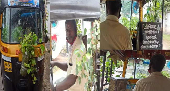 അന്യം നിന്നുപോകുന്ന പച്ചപ്പും ഹരിതാപവും മനസിന് എന്നും കുളിർമ നൽകുകയാണ് ചെയ്യുന്നത്. അത്തരത്തിൽ ചെമ്പഴന്തി സ്വദേശി അനിയുടെ ഓട്ടോറിക്ഷയും കാണുന്നവരുടെ കണ്ണിനും മനസ്സിനും സുഖം പകരുകയാണ്. മണി പ്ലാന്റ് മുതൽ ആൽമരം വരെ വച്ചുപിടിപ്പിച്ച ഒരു വണ്ടിയാണ് ചിത്രത്തിൽ. കൂടാതെ ഈ വണ്ടിയിൽ യാത്ര സൗജന്യവുമാണ്. രോഗികളെ സഹായിക്കാനായി ആർക്കും പണം സംഭാവന ചെയ്യാനായി ഒരു പെട്ടിയും സ്ഥാപിച്ചിട്ടുണ്ട് ഇദ്ദേഹം..