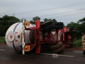 മംഗലാപുരത്ത് നിന്നും കമ്പനി അധികൃതര് എത്തി മറിഞ്ഞ ലോറിയിലെ വാതകം മാറ്റിയാലെ ഈ വഴിക്കുള്ള ഗതാഗതം പുനസ്ഥാപിക്കു. രാത്രി മുഴുവന് പെയ്ത കനത്ത മഴയായിരിക്കാം അപകടകാരണമെന്ന് അധികൃതര് അറിയിച്ചു.