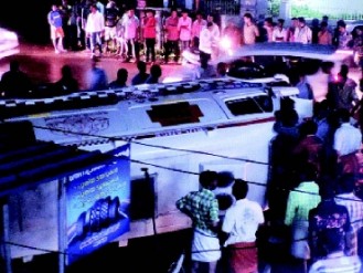 108 ആംബുലന്ലസ് നിയന്ത്രണംതെറ്റി ബൈക്കുകളില് ഇടിച്ചുമറിഞ്ഞ് തീപിടിച്ച് ഡ്രൈവറുള്പ്പെടെ നാലുപേര്ക്ക് പരിക്ക്