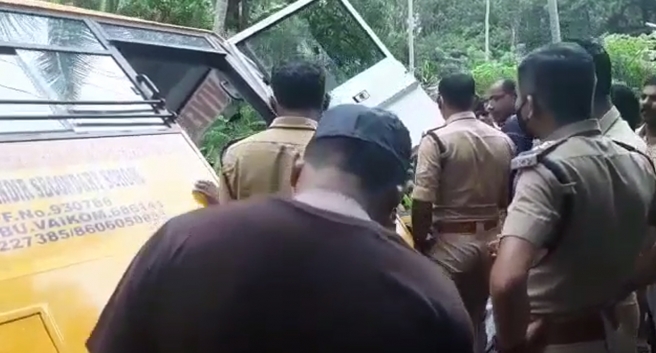ഡ്രൈവറിന്റെ ഡോർ വഴിയാണ് വാഹനത്തിലുണ്ടായിരുന്ന കുട്ടികളെ പുറത്തെത്തിച്ചത്. താറാവ് കൂട്ടത്തെ കണ്ട് ഡ്രൈവർ, വാൻ വെട്ടിച്ചതാണ് വീതി കുറവായ റോഡിൽ അപകടത്തിന് കാരണമായത്. അപകടത്തിൽ നിസാര പരിക്കേറ്റ സ്കൂൾ വാനിലെ സഹായിയെ വൈക്കം താലൂക്ക് ആശുപത്രിയിൽ പ്രവേശിപ്പിച്ചു. ചാലാപ്പറമ്പിലെ സ്വകാര്യ സ്കൂൾ ബസാണ് അപകത്തിൽ പ്പെട്ടത്.