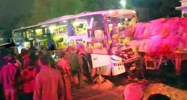 ബസില് യാത്രചെയ്തിരുന്ന 16 പേര്ക്കും ലോറിയിലെ രണ്ടുപേര്ക്കുമാണ് പരിക്കേറ്റത്. ഇവരില് ആരുടെയും നില ഗുരുതരമുള്ളതല്ല. ഇന്നു പുലര്ച്ച നാലിനായിരുന്നു അപകടം നടന്നത്.