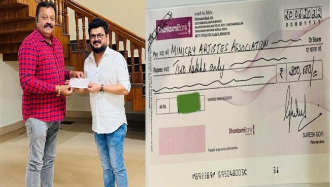 സുരേഷ് ഗോപി നേരത്തേ ഒരു പൊതു വേദിയില് വച്ച് മിമിക്രി കലാകാരന്മാര്ക്കു വേണ്ടി ഒരു വാഗ്ദാനം നല്കിയിരുന്നു. തന്റെ പുതിയ സിനിമകളുടെ അഡ്വാന്സ് കിട്ടുമ്പോള് അതില്നിന്നു എല്ലാം രണ്ട് ലക്ഷം രൂപ വീതം മിമിക്രി കലാകാരന്മാരുടെ സംഘടനയ്ക്കു നല്കുമെന്നായിരുന്നു ആ വാഗ്ദാനം. അതിപ്പോള് പാലിച്ചിരിക്കുകയാണ് സുരേഷ്ഗോപി. മാജിക് ഫ്രെയിംസും ലിസ്റ്റിന് സ്റ്റീഫനുമായി ചേര്ന്ന് ചെയ്യാന് പോകുന്ന പുതിയ സിനിമയുടെ പ്രതിഫലത്തില് നിന്നുള്ള തുകയാണ് താരം ഇപ്പോള് കൈമാറിയിരിക്കുന്നത്. അരുണ്വര്മ സംവിധാനം ചെയ്യുന്ന എസ്ജി 255 എന്ന് തല്ക്കാലം പേരിട്ടിരിക്കുന്ന ചിത്രത്തിന്റെ അഡ്വാന്സ് തുകയാണ് മിമിക്രി ആര്ട്ടിസ്റ്റ് അസോസിയേഷന് പ്രസിഡന്റ് നാദിര്ഷയ്ക്ക് സുരേഷ് ഗോപി കൈമാറുകയായിരുന്നു.