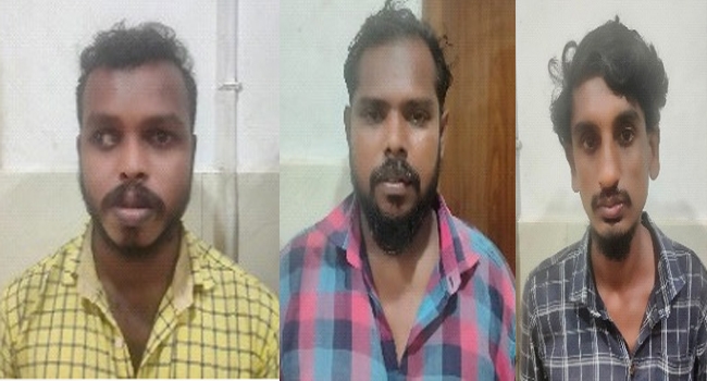 പാലാ സ്റ്റേഷൻ ഹൗസ് ഓഫിസർ ഇൻസ്പെക്ടർ കെ.പി തോംസണിന്റെ നിർദ്ദേശത്തെ തുടർന്ന് സബ് ഇൻസ്പെക്ടർ ഷാജി സെബാസ്റ്റ്യന്റെ നേതൃത്വത്തിലുള്ള പൊലീസ് സംഘമാണ് പ്രതികളെ പിടികൂടിയത്. മലപ്പുറം ചെമ്മൻകടവ് കണ്ണത്തുംപാറ വീട്ടിൽ അബ്ദുൽറസാഖ് മകൻ സഫീർ (38), കോട്ടയം ഒളശ്ശ റാംമതേയിൽ വീട്ടിൽ അനിൽ മകൻ ലെനിൽ (28), ചെങ്ങളം കടയ്ക്കൽ വീട്ടിൽ കൊച്ചുമോൻ മകൻ ജോമോൻ (28) എന്നിവരെയാണ് ഇന്നലെ വൈകി 6.30 മണിയോടെ പാലാ പഴയ ബസ് സ്റ്റാൻഡ് ഭാഗത്തു നിന്നും പിടികൂടിയത്.