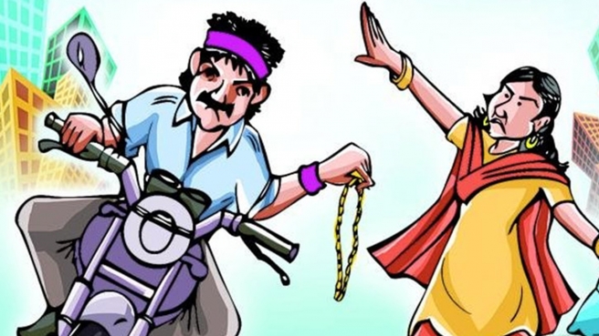 തുടര്ന്നു കുടിക്കാന് വെള്ളം ചോദിച്ചു. വെള്ളം എടുക്കാന് അടുക്കളയിലേക്കുപോയ ധര്മലതയുടെ പിന്നാലെ മോഷ്ടാവ് എത്തുകയും മാലപൊട്ടിച്ച് ഓടുകയും ചെയ്തു. ഹെല്െമറ്റ് ധരിച്ചതുകൊണ്ട് ആളെ വ്യക്തമായി തിരിച്ചറിയാന് കഴിഞ്ഞില്ല. വീട്ടമ്മയും മകളുമാണ് വീട്ടിലുണ്ടായിരുന്നത്. ഇരുവരും വൃക്കരോഗികളാണ്. അഞ്ചല് പോലീസ് സ്ഥലത്തെത്തി അന്വേഷണം ആരംഭിച്ചു. കഴിഞ്ഞ ദിവസം വടമണ് കാട്ടുംപ്പുറത്ത് സ്വദേശി ലക്ഷ്മിക്കുട്ടിയമ്മ(71)യുടെ ഒരു പവന് സ്വര്ണമാല ബൈക്കിലെത്തിയ യുവാവ് പൊട്ടിച്ച് കടന്നിരുന്നു.
