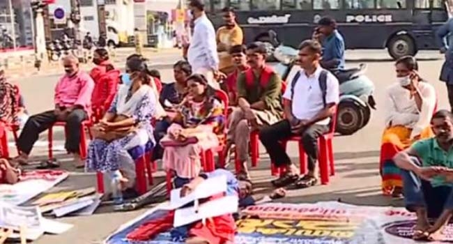ഇതിന് മുന്പ് രണ്ട് പ്രാവശ്യം സമരം ചെയ്തുവെങ്കിലും പാഴ് വാഗ്ദാനം നല്കി കബളിപ്പിച്ചുവെന്നും മന്ത്രിയോ ചീഫ് സെക്രട്ടറിയോ ചര്ച്ചയ്ക്ക് എത്തണമെന്നും സമരക്കാര് ആവശ്യപ്പെട്ടു. അല്ലാത്തപക്ഷം സമരം ശക്തമാക്കുമെന്നും പ്രതിഷേധക്കാര്.