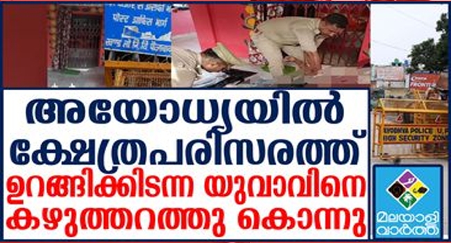 അയോധ്യയില് ഭൂവാപൂര് ഗ്രാമത്തില് വീടിനു സമീപത്തുള്ള ഹനുമാന് ക്ഷേത്രത്തില് കിടന്നുറങ്ങുകയായിരുന്ന യുവാവിനെ കഴുത്തറുത്തു കൊന്നു; ക്ഷേത്രവും പരിസരവും ഇപ്പോള് പോലീസിന്റെ കടുത്ത നിരീക്ഷണത്തിൽ; ചൂടുകൂടുതലുള്ള സമയത്ത് ഫാന് ഉള്ളതിനാലാണ് ക്ഷേത്രത്തില് ഇയാള് ഉറങ്ങാന് എത്താറുള്ളത്; കൊലപാതക കാരണം അന്വേഷിച്ച് പോലീസ്