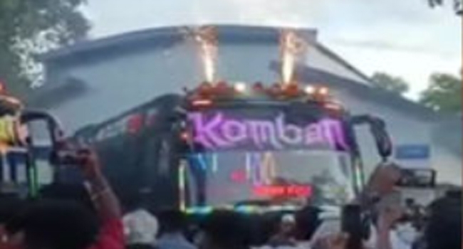 വിനോദ യാത്ര പുറപ്പെട്ട ബസില് പൂത്തിരി കത്തിച്ച് ബസിന് തീപിടിച്ച സംഭവത്തില് കൊമ്പന് ബസ് മോട്ടോര് വാഹന വകുപ്പ് കസ്റ്റഡിയിലെടുത്തു. ആലപ്പുഴയിലെ പുന്നപ്രയില് നിന്നും തകഴിയില് നിന്നുമാണ് ബസുകള് കസ്റ്റഡിയിലെടുത്തത്. മോട്ടോര് വാഹന വകുപ്പിനെ കബളിപ്പിച്ച് കടക്കുന്നതിനിടെയാണ് പിടിവീണത്.
