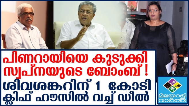 പിണറായിയെ കുടുക്കി സ്വപ്നയുടെ ബോംബ്! ശിവശങ്കറിന് 1 കോടി ക്ലിഫ് ഹൗസിൽ വച്ച് ഡീൽ... ഇടപാട് മുഖ്യമന്ത്രിയുടെ വീട്ടിൽ വച്ച് നടത്തി
