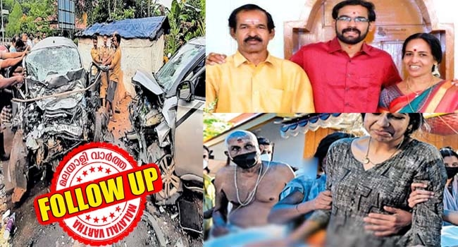 ഭട്ടതിരിയുടെ പ്രമേഹ ചികിത്സയ്ക്കായി കുളനടയിലെ ആശുപത്രിയിലേക്ക് പോകുമ്പോഴാണു ദുരന്തമുണ്ടായത്. ഇന്നലെ പുലര്ച്ചെയാണ് മൂന്നു പേരും കാറില് വീട്ടില് നിന്നു യാത്ര പുറപ്പെട്ടത്. ഭട്ടതിരിയാണ് കാര് ഓടിച്ചിരുന്നത്. മകന് നിഖില്രാജ് മുന്നിലും ഭാര്യ ശോഭ അന്തര്ജനം പിന്നില് വലത് വശത്തുമായിരുന്നു.