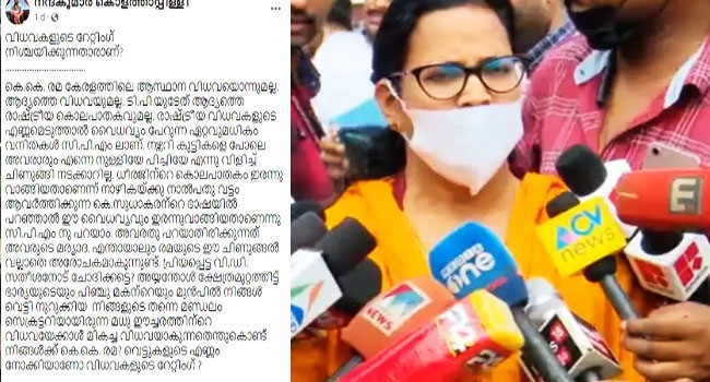 കെ.കെ. രമ ആസ്ഥാന വിധവയല്ല, വെട്ടുകളുടെ എണ്ണം നോക്കിയാണോ വിധവകളുടെ റേറ്റിങ്? -അധിക്ഷേപ കുറിപ്പുമായി സെക്രട്ടറിയേറ്റിലെ മുന് അഡീഷണല് സെക്രട്ടറി