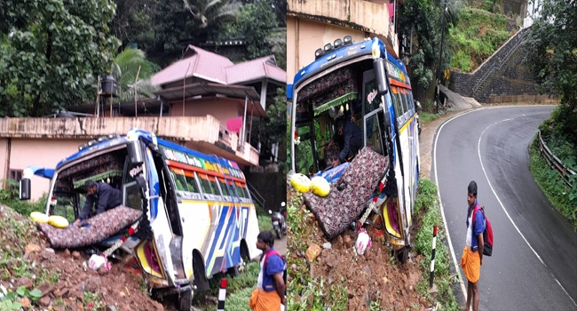 എരുമേലി കണമലയിൽ അയ്യപ്പൻമാരുടെ വാഹനം അപകടത്തിൽപ്പെട്ടു; നിയന്ത്രണം വിട്ട് തിട്ടയിലേക്ക് ഇടിച്ചു കയറി
