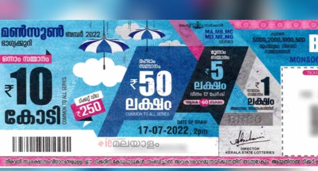 മൺസൂൺ ബംപർ ; 10 കോടി എറണാകുളത്ത് വിറ്റ ടിക്കറ്റിന്; ഭാഗ്യശാലിയെ തിരഞ്ഞ് നാട്ടുകാർ... 10 കോടിയുടെ ഒന്നാം സമ്മാനം ലഭിച്ചത് MA 235610 എന്ന നമ്പരിലുള്ള ടിക്കറ്റിന്