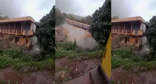 കെട്ടിടത്തിന് താഴെയുള്ള പ്രദേശത്ത് കഴിഞ്ഞ ദിവസം മണ്ണിടിഞ്ഞിരുന്നു. ഇതിനെ തുടർന്നാണ് കെട്ടിടം അപകടാവസ്ഥയിലായത്. തുന്നൽക്കട, ഫർണിച്ചർ ഷോപ്പ്, ബിജെപി ഓഫീസ് തുടങ്ങിയവ ഈ കെട്ടിടത്തിൽ പ്രവർത്തിച്ചിരുന്നു. രണ്ട് കുടുംബങ്ങളും ഇവിടെ ഉണ്ടായിരുന്നു. ആളുകളെ നേരത്തേ ഒഴിപ്പിച്ചതിനാൽ വൻ അത്യാഹിതം ഒഴിവായി.
