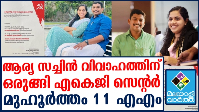 കല്യാണം വിളി തകൃതി... എല്ലാവരും കാത്തിരുന്ന ആര്യ സച്ചിന് വിവാഹം സെപ്റ്റംബര് നാലിന് എകെജി സെന്ററില്; സിപിഎമ്മിന്റെ യുവതലമുറയുടെ പ്രതീക്ഷകളായ ഇരുവരും തമ്മിലുള്ള വിവാഹം ആഘോഷമാക്കാന് പാര്ട്ടി; ആര്ഭാടങ്ങളൊന്നുമില്ലാത്ത ക്ഷണക്കത്തില് സച്ചിന്റെയും ആര്യയുടെയും പാര്ട്ടിയിലെ ഭാരവാഹിത്വം പറഞ്ഞ് പരിചയപ്പെടുത്തല്