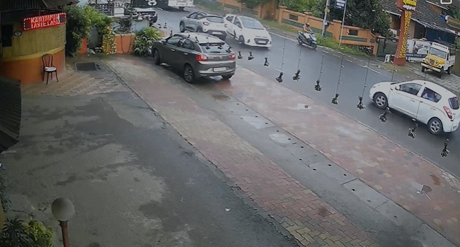 കോട്ടയം പള്ളം കരിമ്പിൻകാലാ ഫാമിലി റസ്റ്ററന്റിനു മുന്നിലെ റോഡിലാണ് ശനിയാഴ്ച വൈകിട്ട് 4.15 ഓടെ അപകടം ഉണ്ടായത്. ചങ്ങനാശേരി ഭാഗത്തു നിന്നും എത്തിയ കാർ എതിർ ദിശയിലേയ്ക്കു തെന്നി മാറി, ആദ്യം മുന്നിൽ പോയ കാറിന്റെ പിന്നിൽ ഇടിക്കുന്നത് വീഡിയോയിൽ വ്യക്തമായി കാണാം.