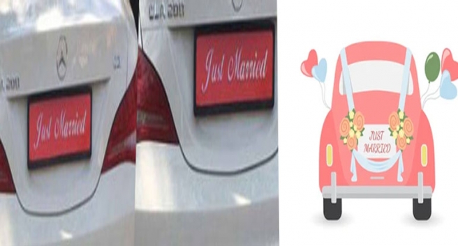 വാഹന ഉടമയിൽ നിന്നു പിഴയീടാക്കുകയും ചെയ്തു.നമ്പർ പ്ലേറ്റിനു പകരം ‘ജസ്റ്റ് മാരീഡ്’ എന്ന ചുവന്ന സ്റ്റിക്കർ പതിച്ചു 2 കാറുകളുടെ യാത്ര. നിയമലംഘനം ശ്രദ്ധയിൽപ്പെട്ടവർ പൊലീസിനെയും മോട്ടർവാഹന വകുപ്പിനെയും വിവരമറിയിച്ചതോടെ അന്വേഷണം തുടങ്ങി. വിവാഹസംഘം ഫോട്ടോഷൂട്ടിനു വേണ്ടിയോ മറ്റോ യാത്ര ചെയ്ത കാറുകളാണ് ഇവയെന്നാണു പ്രാഥമിക സൂചന. ഏതു സാഹചര്യത്തിലാണെങ്കിലും നമ്പർപ്ലേറ്റ് മറച്ചുവയ്ക്കുന്നതു നിയമലംഘനമാണെന്നും ശ്രദ്ധയിൽപ്പെട്ടാൽ കർശന നടപടി സ്വീകരിക്കുമെന്നും തൃശൂർ ജോയിന്റ് ആർടിഒ അറിയിച്ചു.