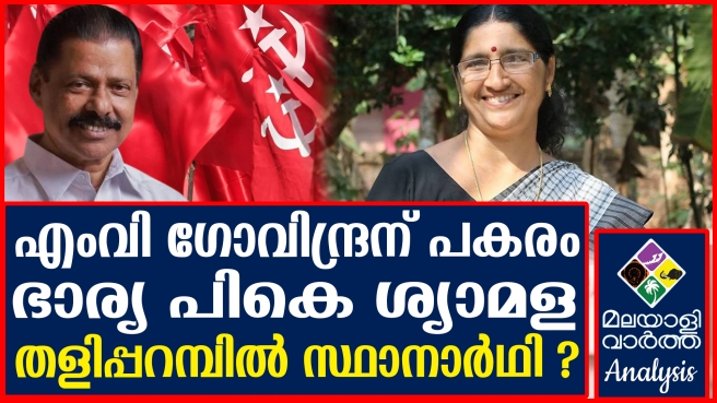 മുന്കാലങ്ങളില് നിന്നു വ്യത്യസ്തമായി സിപിഎമ്മില് കുടുംബവാഴ്ച സാധാരണമായിരിക്കെ ഗോവിന്ദന് പകരം ഭാര്യ ശ്യാമള സ്ഥാനാര്ഥിയാകുമെന്നാണ് സൂചന. മുന്പ് എല്ഡിഎഫ് കണ്വീനറായിരിക്കെ എ വിജയരാഘവന്റെ ഭാര്യയും പാര്ട്ടിയില് ഒട്ടും തന്നെ പ്രസക്തയല്ലാത്ത വ്യക്തിയുമായിരിക്കെ കെ ബിന്ദു സ്ഥാനാര്ഥിയായി. വിജയിച്ചെത്തിയ ബിന്ദുവിനെ ഏവരെയും ഞെട്ടിച്ചുകൊണ്ട് പിണറായി ഉന്നത വിദ്യാഭ്യാസവകുപ്പ് മന്ത്രിയാക്കി പാര്ട്ടിയെ അതിശയിപ്പിച്ചു. ഇത്തരത്തില് സിപിഎമ്മില് കുടുംബവാഴ്ച പതിവായിരിക്കെ ഗോവിനന്ദനു പകരം ശ്യാമള എന്ന സാധ്യതയിലേക്ക് പാര്ട്ടി വന്നുകൂടായ്കയില്ല. ആന്തൂര് നഗരസഭ മുന് ചെര്പേഴ്സണും കണ്ണൂര് ജില്ലാ കമ്മിറ്റി അംഗവുമാണ് പി.കെ ശ്യാമള. മാത്രമല്ല കോടിയേരി ബാലകൃഷ്ണന്, പികെ ശ്രീമതി, ജയരാജന് തുടങ്ങിയവരുടെ താല്പര്യവും ശ്യാമളയെ സ്ഥാനാര്ഥിയാക്കണമെന്നാണ്.