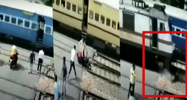 തിരിഞ്ഞ് മാറാനുള്ള ശ്രമത്തിൽ ബൈക്ക് പാളത്തിൽ കുടുങ്ങി. ബൈക്ക് വിളിച്ചു നീക്കുവാൻ ശ്രമിച്ചെങ്കിലും ശ്രമം വിഫലമായി. ഇതോടെ അപാകടം തിരിച്ചറിഞ്ഞ യാത്രക്കാരൻ ബൈക്കിൽ നിന്നുമിറങ്ങി മാറിയതും ബൈക്ക് തട്ടിത്തെറിപ്പിച്ചുകൊണ്ടു ട്രെയിൻ കടന്നുപോയി. സംഭവത്തിന്റെ വീഡിയോ ഇപ്പോൾ സാമൂഹ്യ മാധ്യമങ്ങളിലും മറ്റു പ്രചരിക്കുകയാണിപ്പോൾ.