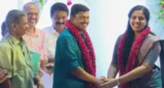 എ.കെ.ജി സെന്ററിലെ ഒരു ലളിത വിവാഹം... മേയര് ആര്യാ രാജേന്ദ്രന്റേയും ബാലുശേരി എം.എല്.എ കെ.എം സച്ചിന്ദേവിന്റേയും വിവാഹം ലളിതമായി നടന്നു