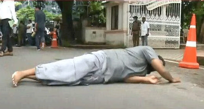 കേരളത്തിലെ തെരുവുനായ പ്രശ്നം : ഹൈക്കോടതിക്ക് മുന്നില് നഗരസഭ കൗണ്സിലറുടെ ശയനപ്രദക്ഷിണം